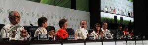 There are so many nitty-gritty details to discuss here, that NGO observers as well as negotiators remain steeped in the complex vocabulary and acronyms of the negotiations, often rightly so since these tiny details are essential for a successful agreement. But the unique vocabulary of the UNFCCC process also poses a distinct danger that allows all of us gathered here, parties and NGO observers alike, on what is really at stake. In the opening plenary this morning, Mexican President Felipe Calderon zeroed in on the key issue, saying, “we are still learning how to come to agreement as a species and a planet… our relationship with nature is reaching a critical point.” The science shows that the planet is quickly approaching a point at which human actions will no longer matter, and our climate will be caught in a vicious feedback loop of warming that leads to massive natural disasters, food insecurity, migration and an earth as we know it that is completely altered.