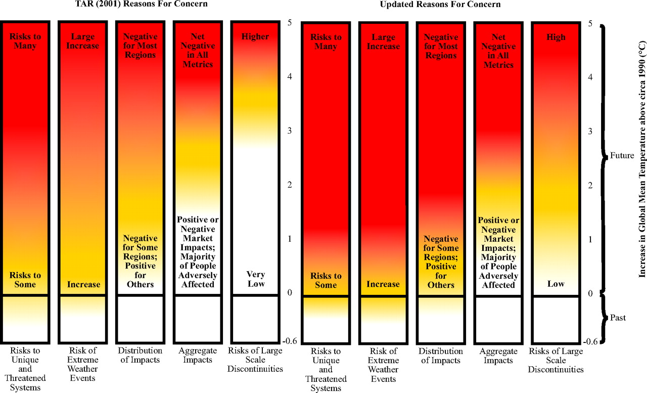 Si l’on s’intéresse aux dernières données scientifiques, des études récentes ont permis d’actualiser les estimations du GIEC en termes d’impacts depuis 2001. Il apparaît que sur la base des mêmes critères, les effets des changements climatiques sont plus négatifs qu’anticipés. Autrement dit, il faudrait limiter davantage le réchauffement moyen (ce qui apporte de l’eau au moulin des pays AOSIS).