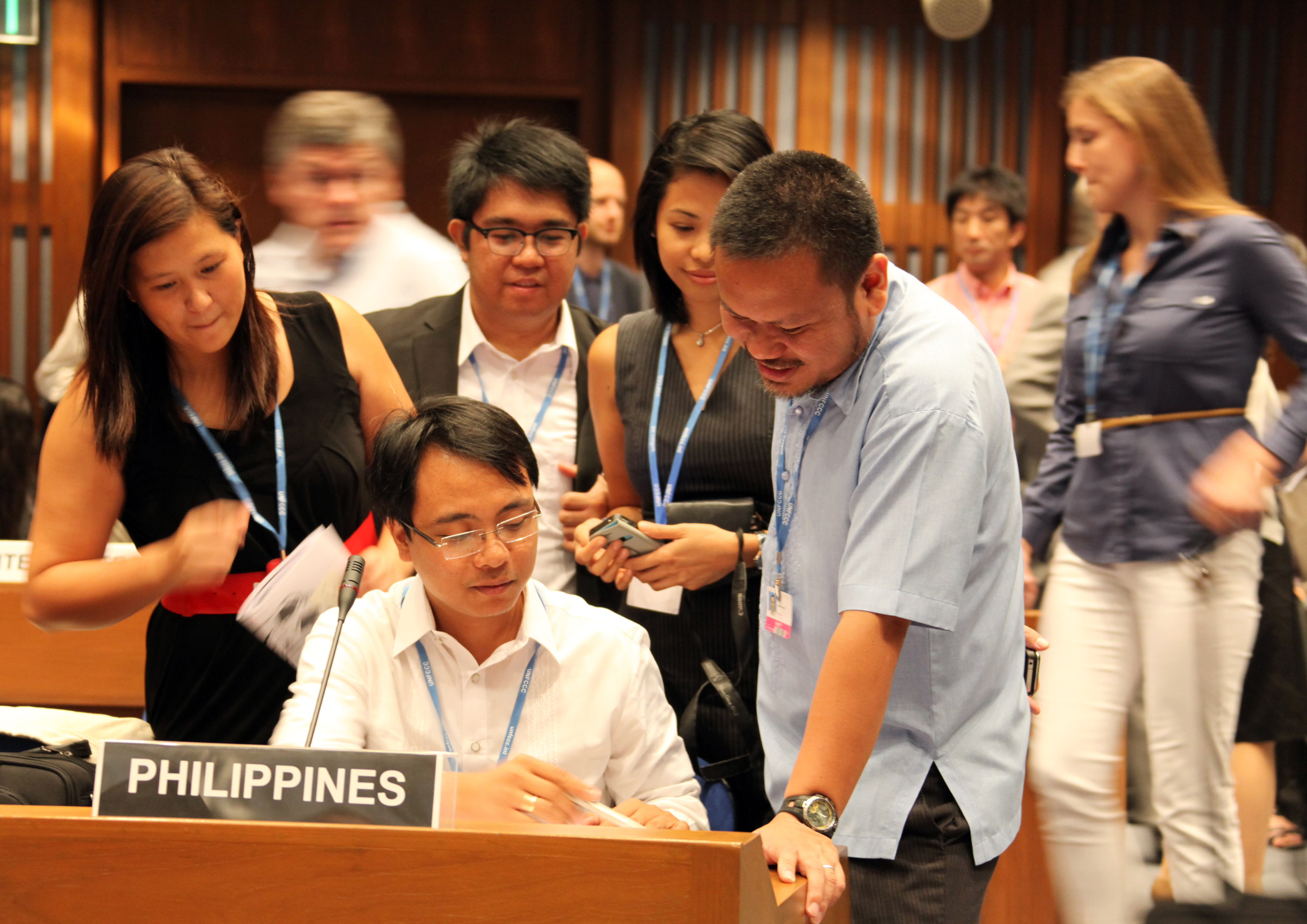 *As a quick note, there are no nametags but the EU representative is wearing a full suit, and appears slightly darker in the video than his picture, Naderev Saño from Philippines is the first man on the phone with the exquisite black hair, but without the blazer, Seyni Safo from Mali is surprisingly not wearing a shirt.