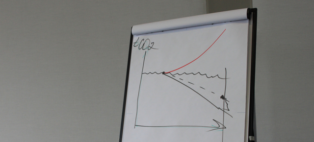 Many delegates have reminded their colleagues since the beginning of the week on the scale of the actions needed to reach the objective of the climate negotiations: ensure that the footprint of human activities does not unsettle the climate to a dangerous level. As we walked in one of the room for a bilateral meeting with the climate ambassador of one of the key negotiating country, we found a flip charted left aside in a corner and highlighting the emission pathway required to meet this objective. Could this be the first hint of a science-based policy making?