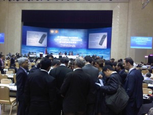 Conciliabule informel des négociateurs (pour débloquer la situation) lors de la séance plénière du groupe AWG-LCA à Tianjin, 9 oct 2010